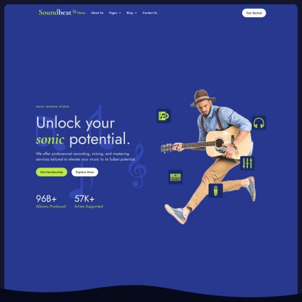 ThemeForest Soundbeat is a WordPress theme tailored for music studios utilizing Elementor. This template of a music studio offers a dynamic and visually appealing design that caters specifically to the needs of music studios. Its layout, color scheme, and elements are intricately crafted to enhance the user experience and reflect the branding requirements of music-related businesses. From a vibrant color palette to strategic placement of sections, it provides a seamless and engaging interface for music studio websites.