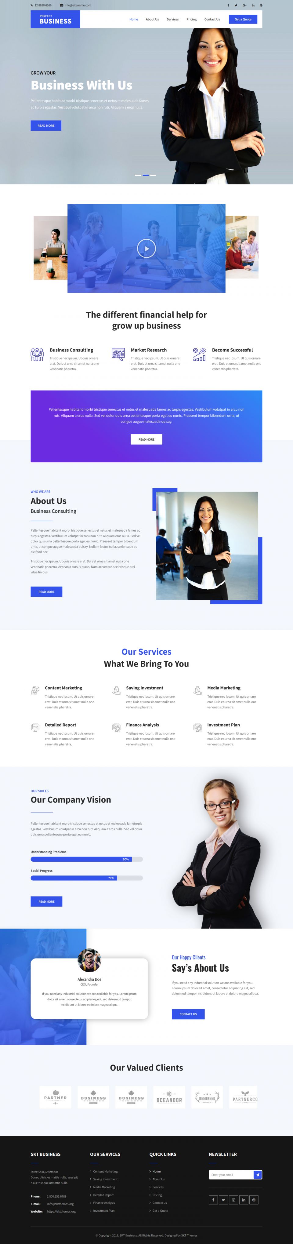 The theme includes a variety of pre-designed templates and layouts suitable for business websites. With a professional and clean design, the theme allows businesses to create a visually appealing and engaging online presence. The themes responsive design ensures that the website looks great on any device, providing a seamless user experience for visitors.